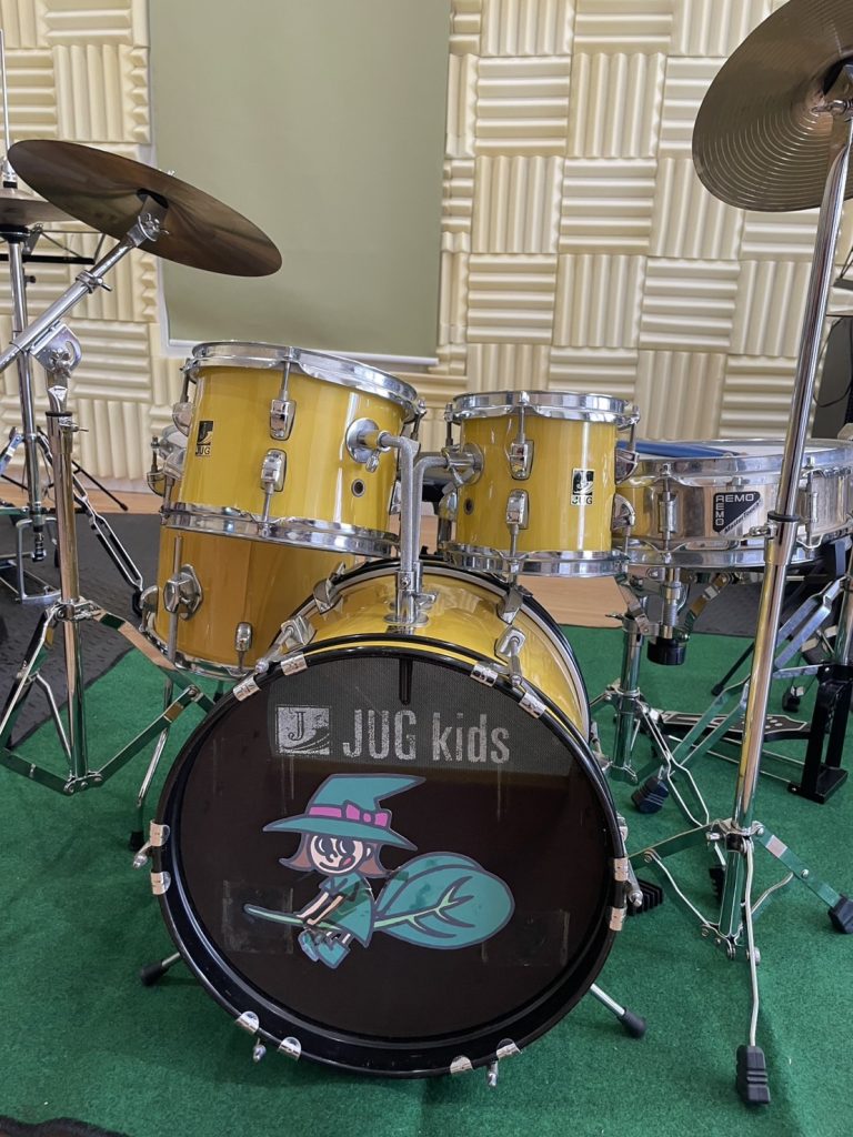 大人用のドラムだと小さいとバスドラムに足は届かないかもしれません。