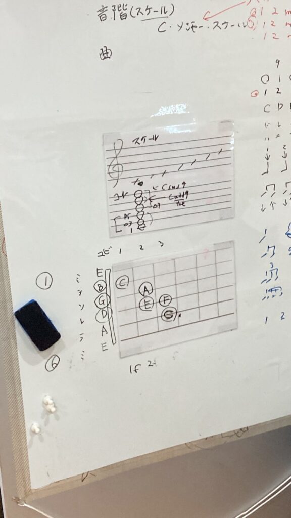Cメジャースケールの指版の理解。簡単な課題曲に挑戦しました。